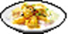 A nice blend of nutritious potatos and onions in a salad. Fiber-rich potato will help with digestion, and a good blend of nutrients will help increase one's skill and intelligence.
