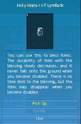 The Holy Water of Lymilark helps the durability of an item last longer.