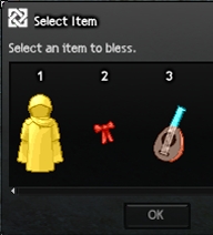 Once you click on 'Use', a new window will appear, asking you to select an item you wish to bless.