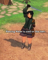 If you have a large bottle of the Holy Water of Lymilark, you can even bless all your items at once.